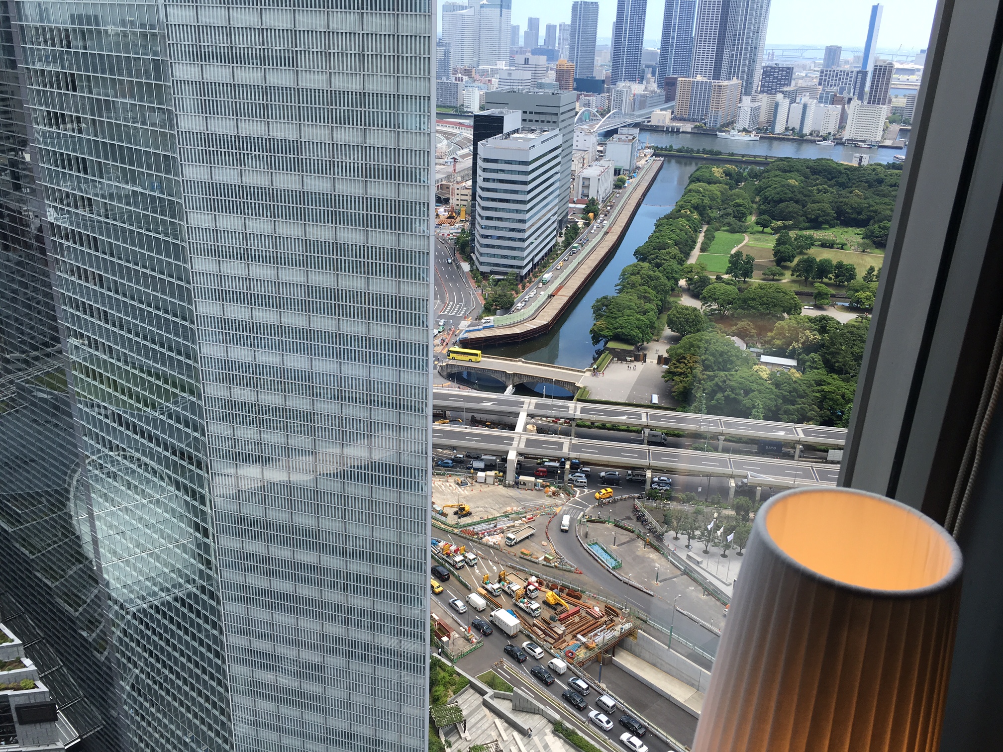 窓からは浜離宮、そして東京湾が見えます。
