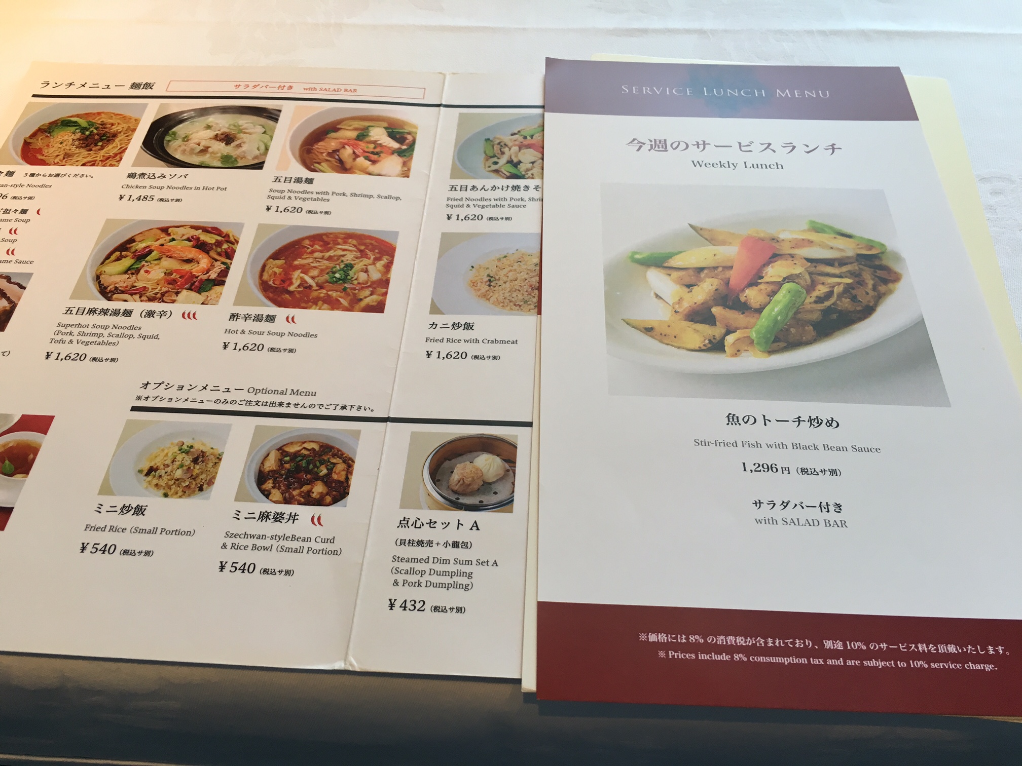 「今週のサービスランチ(税込1,296円)」を注文。魚のトーチ炒め。